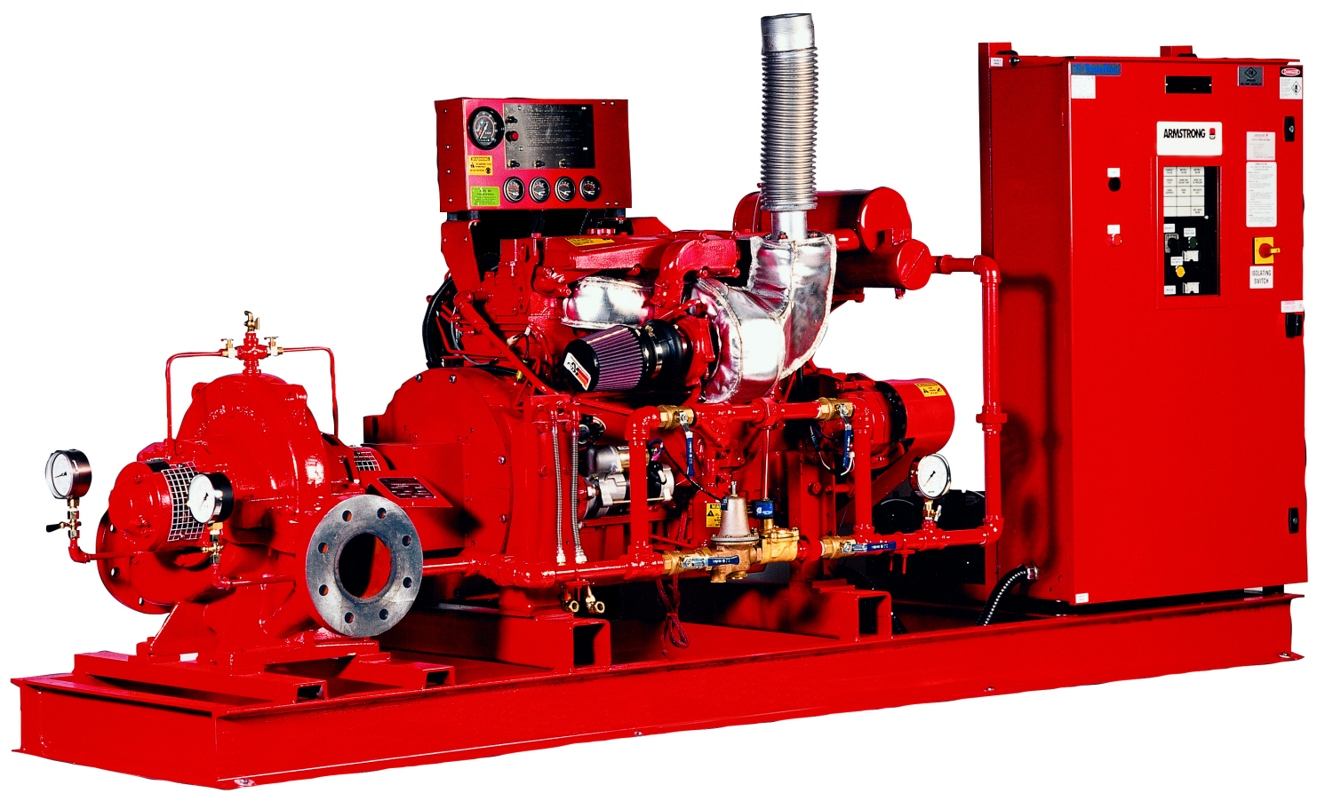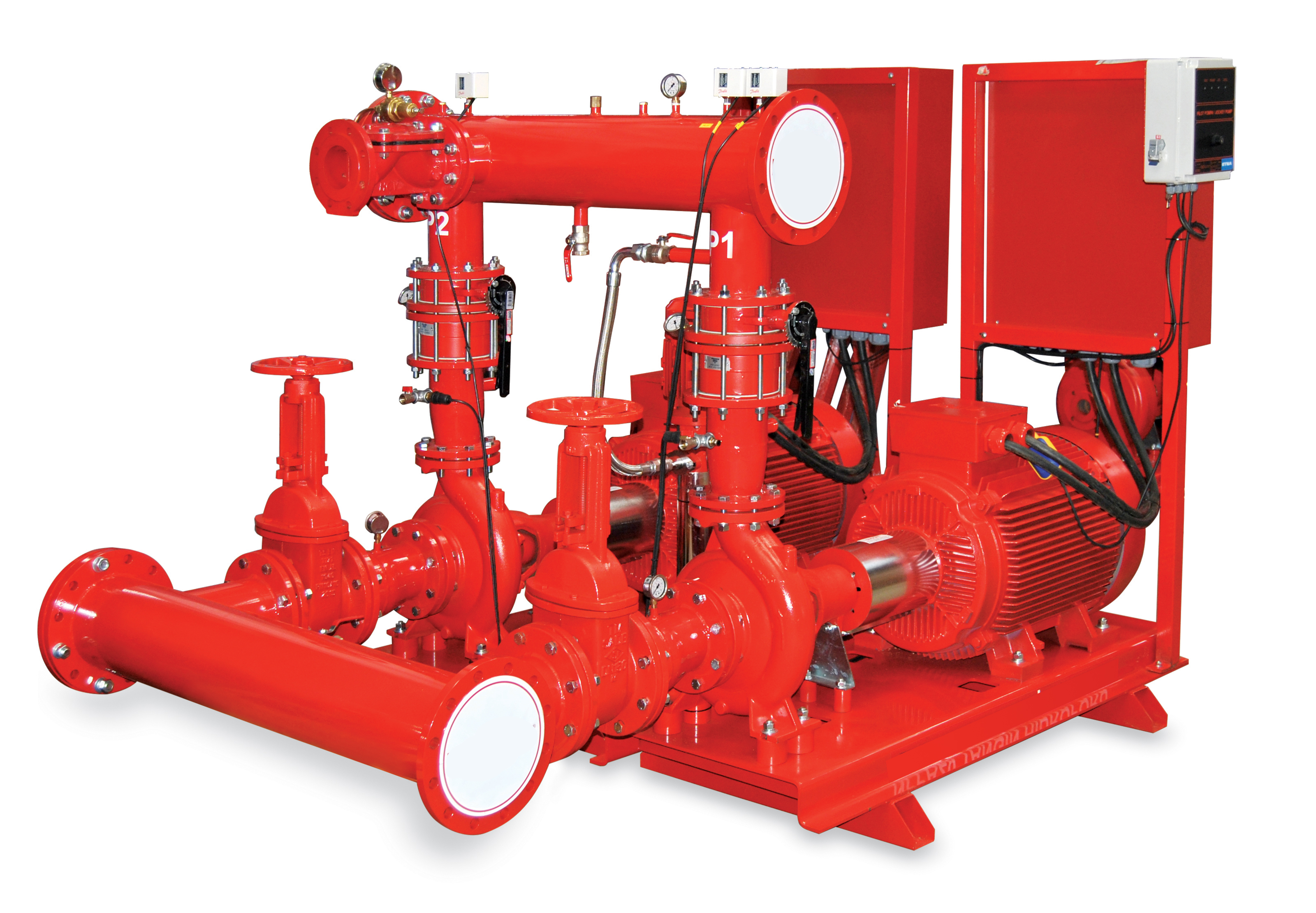 مضخات إطفاء الحريق هي الجزء الحيوي من نظام الرش الآلي الذي يغذي مرشات مكافحة الحريق وهي عبارة عن مضخات مياه ذات مواصفات خاصة تستعمل لدفع الماء لأنظمة مكافحة الحريق عند الحاجة، وحسب طبيعة هذه الأنظمة غالبا ما تكون مضخات الحريق من نوعية الطرد المركزي،وتعمل هذه المضخات عن طريق تغذيتها بالكهرباء أو الديزل أو البخار. عادة ما يكون خط السحب للمضخة متصل بمصدر ثابت للمياه (خزان مياه، بحيرة،...). وظيفة المضخة هو إيصال تيار مائي بضغط عالٍ إلى الصواعد المتصلة بالمرشات المائية وخراطيم إطفاء الحريق.